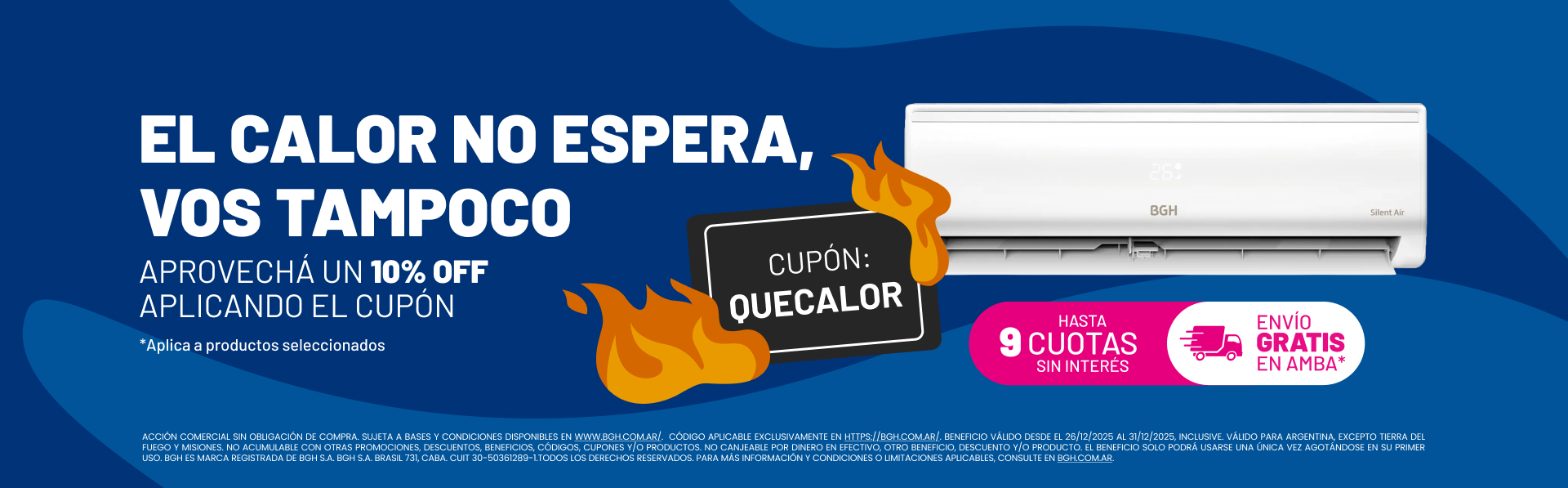 Aire Acondicionado BGH Split Inverter Frío/Calor 3010F Cargando precio...12 $ 72.499,91 sin interésVer Precio sin impuestos nacionalesAgregar al carrito