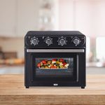 Este horno eléctrico de 30 litros no solo te permite hornear, sino que también incluye funciones de Air Fryer, Rotisserie, Tostador y Convección, ofreciéndote múltiples opciones para cocinar de manera rápida y saludable.